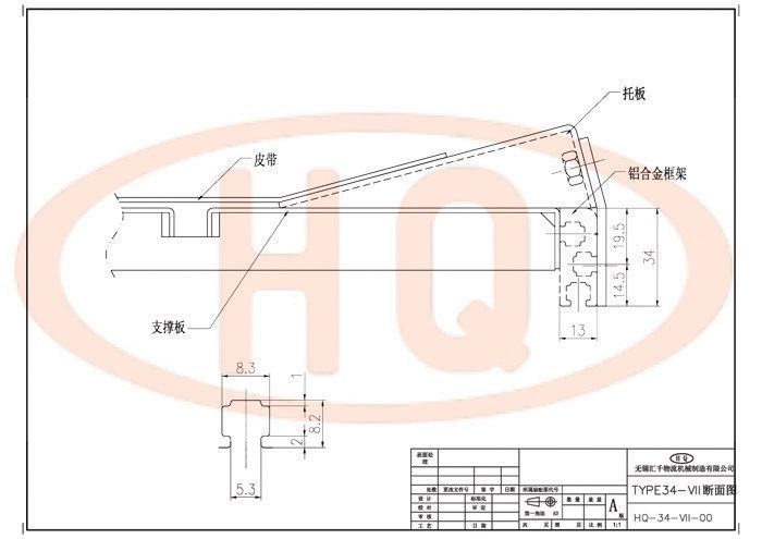 皮帶中間部凹陷設計(船底形),可以輸送顆粒狀產品,防止皮帶上輸送的小物品掉落。