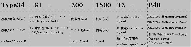 皮帶速度 | 定速,變速 | 皮帶材質 | PVC皮帶(標準),PU帶 | |||||||