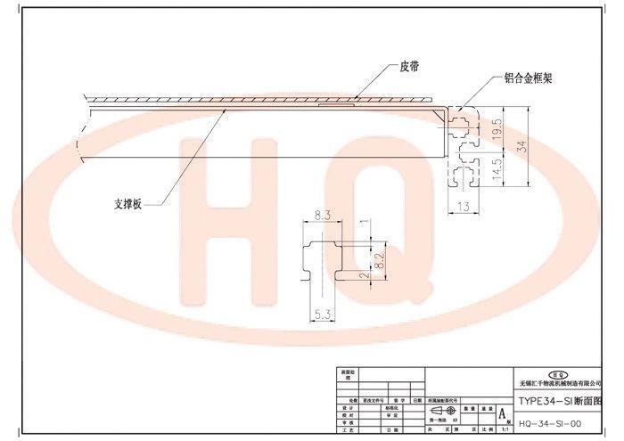 使用34mm鋁合金型材支架,皮帶傳送、驅(qū)動(dòng)。驅(qū)動(dòng)部使用調(diào)整機(jī)構(gòu),可以調(diào)整皮帶的松緊。驅(qū)動(dòng)部為鑄鋁一體成型,主動(dòng)輪和從動(dòng)輪為鋁同步輪,皮帶為樹脂同步帶,具有精度高、靜音性及耐久性,無油脂污染。