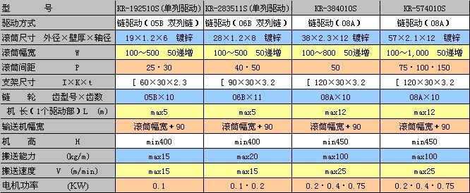 KR-S系列驅(qū)動輸送機使用單排鏈條驅(qū)動每一根滾筒,傳動平穩(wěn)、勻速,適用于定速搬運物品的場合。