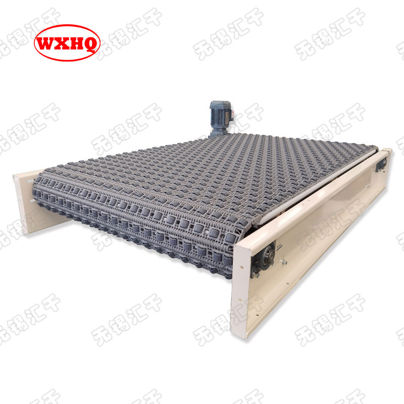 1、模組塊的組合設計 由于塑料模組輸送鏈把作為牽引構件的牽引鏈條和支撐工件的輸送鏈板合二為一,結構簡單,不存在鏈板和鏈條之間的鏈接。每個模組塊都是一個組成單元,可以任意更換,如有設備搬遷,幾乎所有原有設備組成部分都可以有效利用?;旧蠈崿F標準化設計,減少了設計工作量。