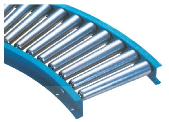 90 °curved flexible conveyor is made up with tapered rollers,with small bend radius,suitable for turning joint situation with narrow turning space.