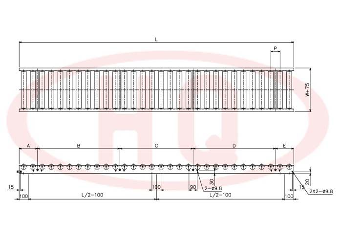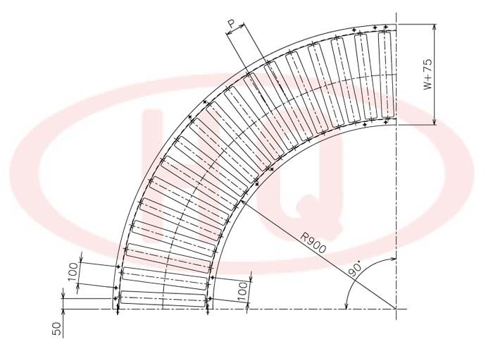 型 號(hào) | 滾筒外徑(φ)×壁厚(t) 軸承 | 軸外徑(φ)×壁厚(t) 加工 | 支架形狀I(lǐng)×K×t 輸送機(jī)高(H) | 機(jī) 長(zhǎng) L | 滾筒幅 寬 W | 滾筒間隔 P | 轉(zhuǎn)彎半徑 R | ||||||