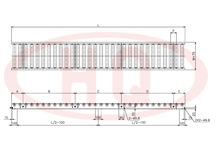 輸送機寬 W+75(mm) | 175 | 275 | 375 | 475 | 575 | 675 | 775 | 875 | 975 | 1075 | |