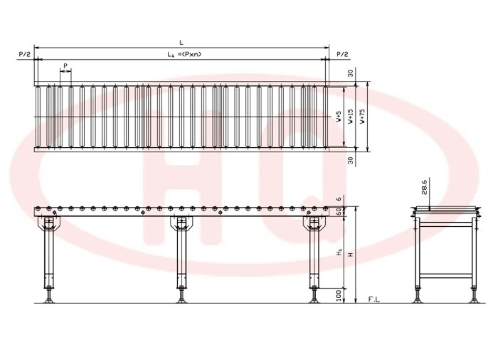 輸送機幅寬 W+75 (mm) | 175 | 275 | 375 | 475 | 575 | |