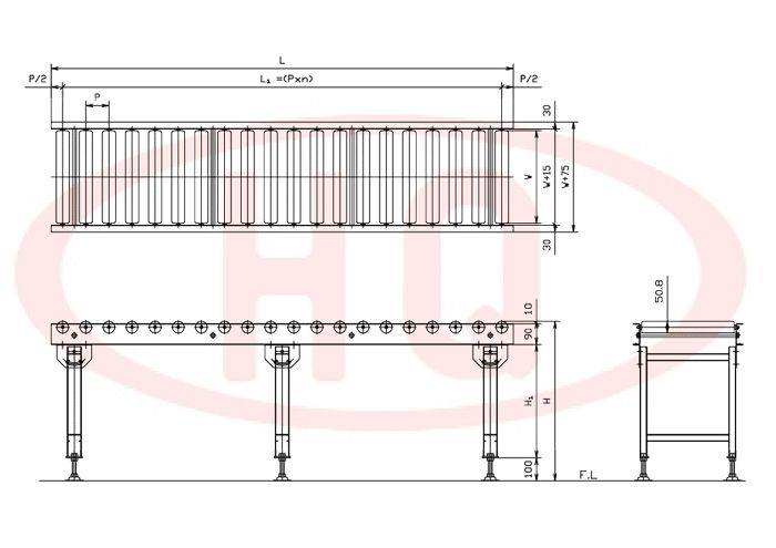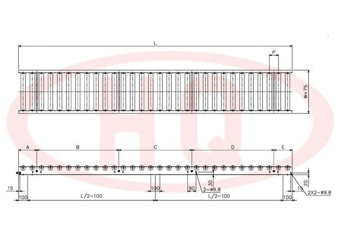 輸送機幅寬W+75(mm) | 175 | 275 | 375 | 475 | 575 | 675 | 775 | 875 | 975 | 1,075 | ||