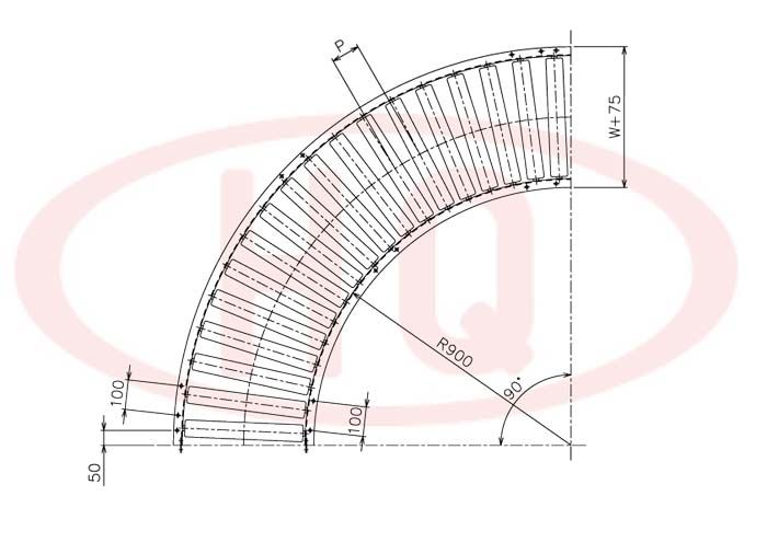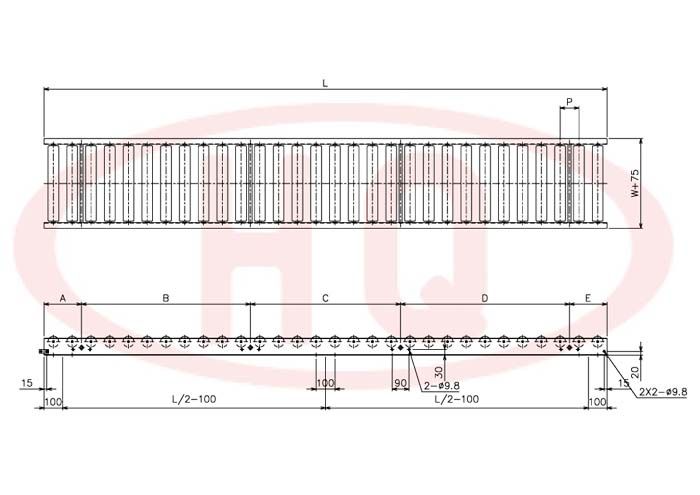 型 號 | 滾筒外徑(φ)×壁厚(t) 軸承 | 軸外徑(φ)×壁厚(t) 加工 | 支架形狀I×K×t | 機 長 L | 滾筒幅寬 W | 滾筒間距 P | 轉彎半徑 R | ||||||