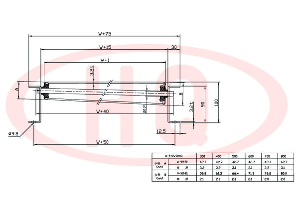 滾 筒 幅 寬 W (mm) | 200 | 300 | 400 | 500 | 600 | ||