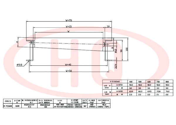 R-TC1,600 | 小徑 A (mm) | 滾 筒 外 徑 | 50.0 | 50.0 | 50.0 | 50.0 | 50.0 | |